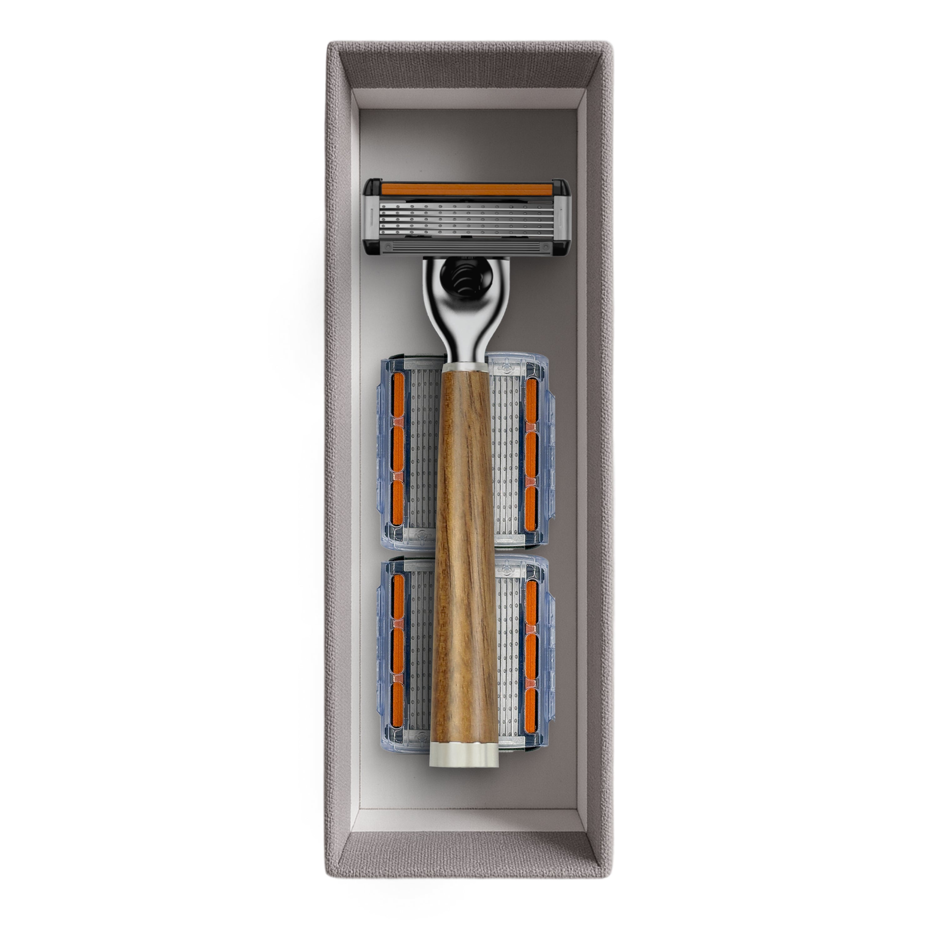 Díky krásné kombinaci nadčasového klasického designu a moderní technologie bude tento strojek elegantním doplňkem vaší holicí sady. Je kompatibilní se všemi břity Schieller, stejně jako s holicími hlavicemi Gillette Mach 3 a Gillette Venus. Součástí balení je jedna připojená hlavice Schieller Excel 5. Díky prémiovému obalu z laminovaného kartonu je tento strojek také skvělým tipem na dárek.